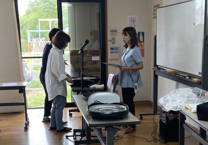 今回は、東大阪市の東保健所から栄養士の松田さん、食育メイトの北川さんはじめ6名講師として来ていただきました。