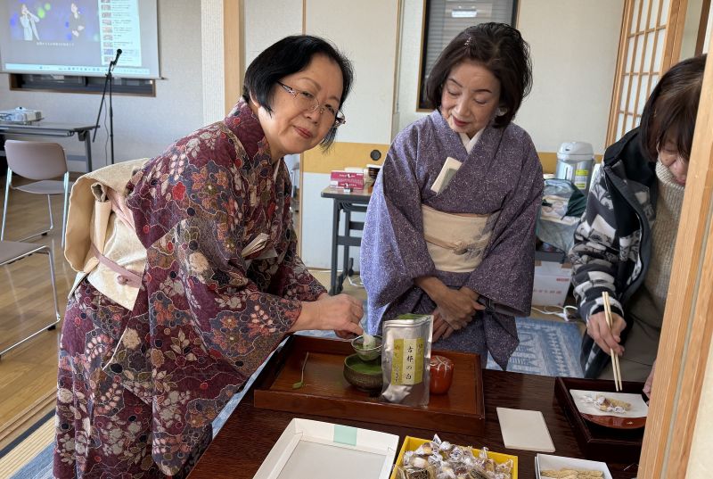 今年初めての北石切コミュニティ茶論と言うことで、着物を着てくださった方が6名もあり、華やかな会となりました。