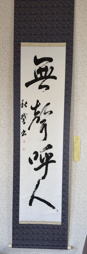 尺八も見せていただきました。1尺8寸のを尺八と言うらしいです。1尺6寸のもありますが、これも尺八と言うと教えていただきました。しかも、携帯用に二つに分かれるんですね。お値段もなかなかのものでした。