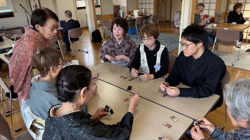講師の田口さんは、午前中から参加いただきました。一緒に百人一首での坊主めくりや花札に挑戦したりと楽しくゲーム遊びができました。
