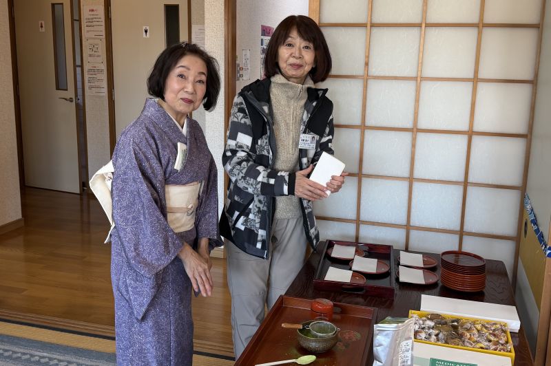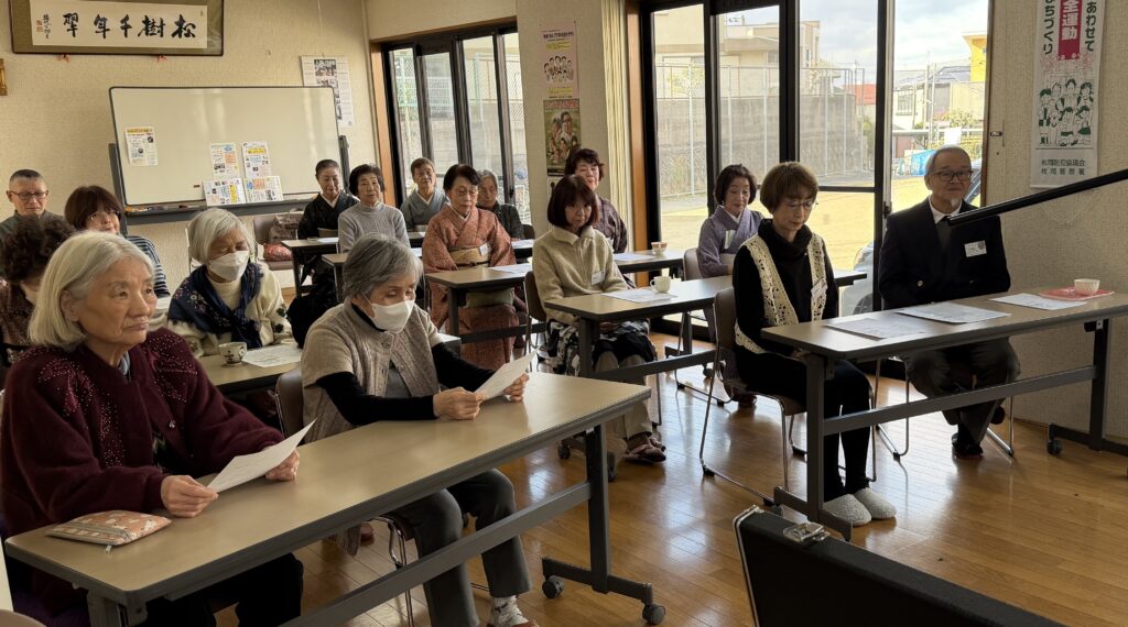 午後のメインイベントの「尺八演奏」では、講師の田口さんは自己紹介から始まって、お正月らしい「春の海」「石清水」の2曲と、間に質問タイムもありました。