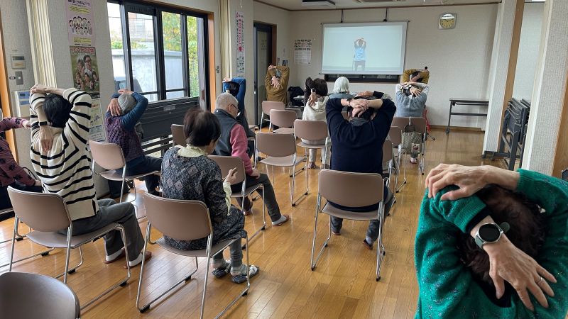 朝からは体操から始まります。寒いときは身体を動かしましょう。