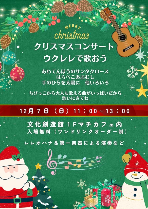 おまけ:山科講師はウクレレを習っていて、発表会があるそうです。良かったらどうぞ。東大阪市文化創造館です。